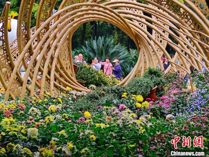 成都第61届菊花展吸引了不少民众前往观展。记者 刘忠俊 摄