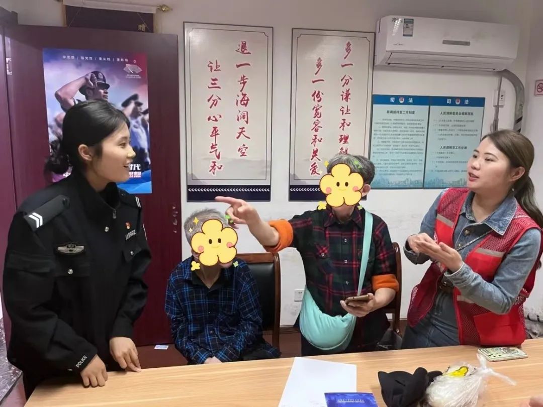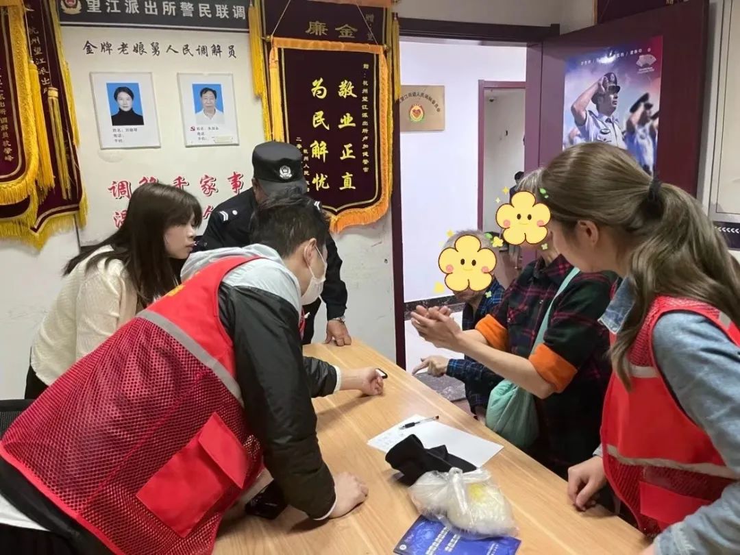 望江街道反诈办公室负责人李晓莺得知两位老人交流困难的特殊情况后,迅速通过亚运文明驿站请来两位“星”青年城市志愿服务队的手语志愿者,协助民警进行反诈宣传,仅20分钟,手语志愿者便第一时间来到了派出所。