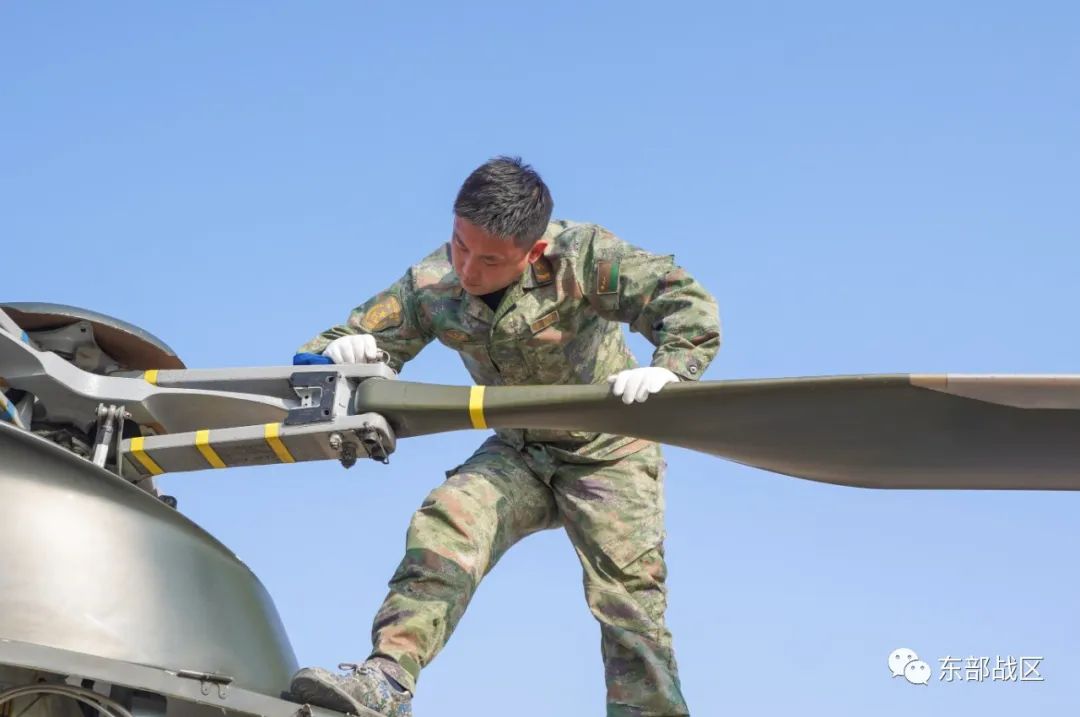 ▲机械师检查直升机。