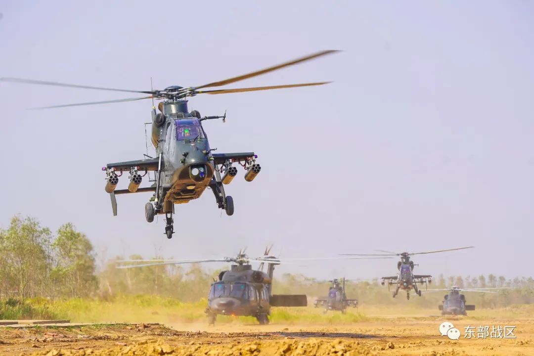 多架武装直升机挂载实弹盘旋升空