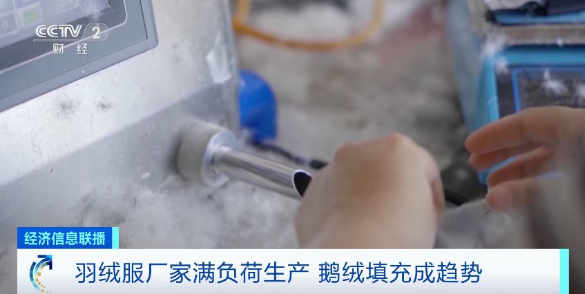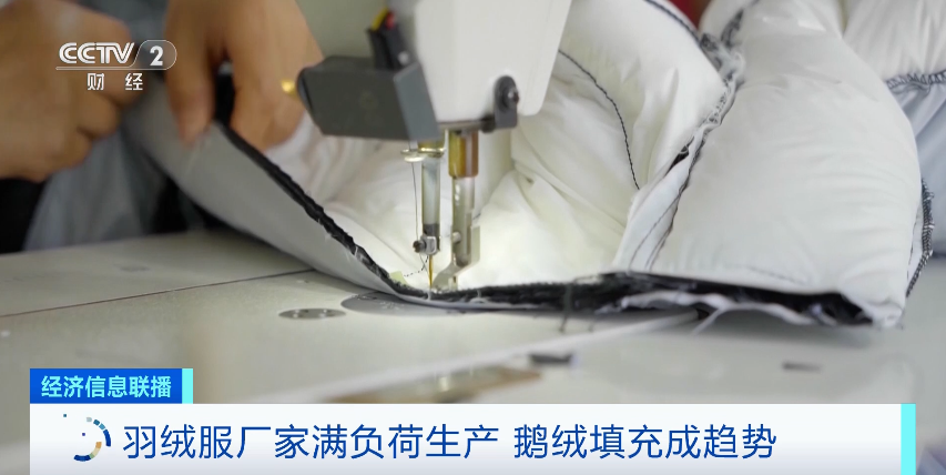 在浙江绍兴一家羽绒服生产企业,负责人告诉记者,目前为了准时完成客户的翻单,产线已经满负荷生产 。今年的羽绒服订单量较去年同期增长了30%,预计全年产量约30万件。