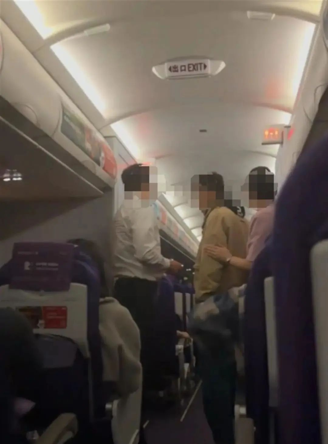 11月5日,航班上一名乘客告诉记者,事发时飞机正在降落过程中,涉事男子突然要去开舱门,有乘客看到情况后,大喊问他“要干什么”,随后机上乘务人员和乘客一起,将这名男子制止了,“我们正常下飞机就走了,没有耽误我们行程,他(涉事乘客)被留下来了。”