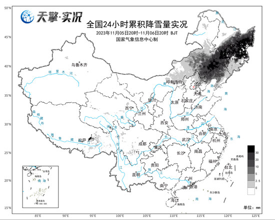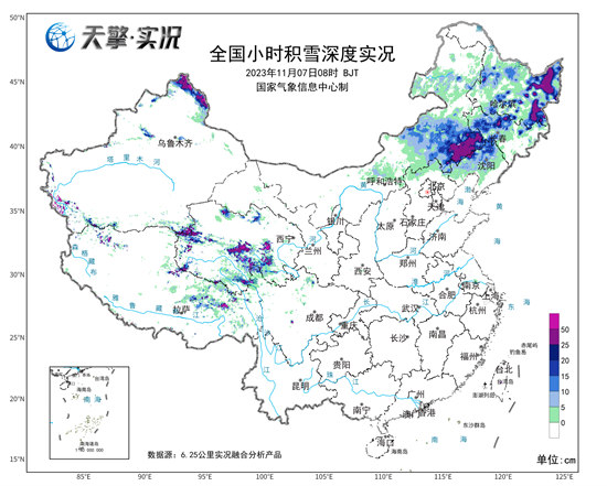 监测显示,截至11月7日08时,内蒙古东南部、辽宁北部、吉林西部和北部、黑龙江东部和南部积雪深度普遍超过5厘米,部分地区积雪15~20厘米。辽宁北部、黑龙江东部的一些地方积雪深度超过了25厘米,像是双鸭山、佳木斯、集贤积雪深度都超过了40厘米。此外,11月5日20时至6日20时,东北地区共有53个站点降水量打破当地11月单日降水量纪录。