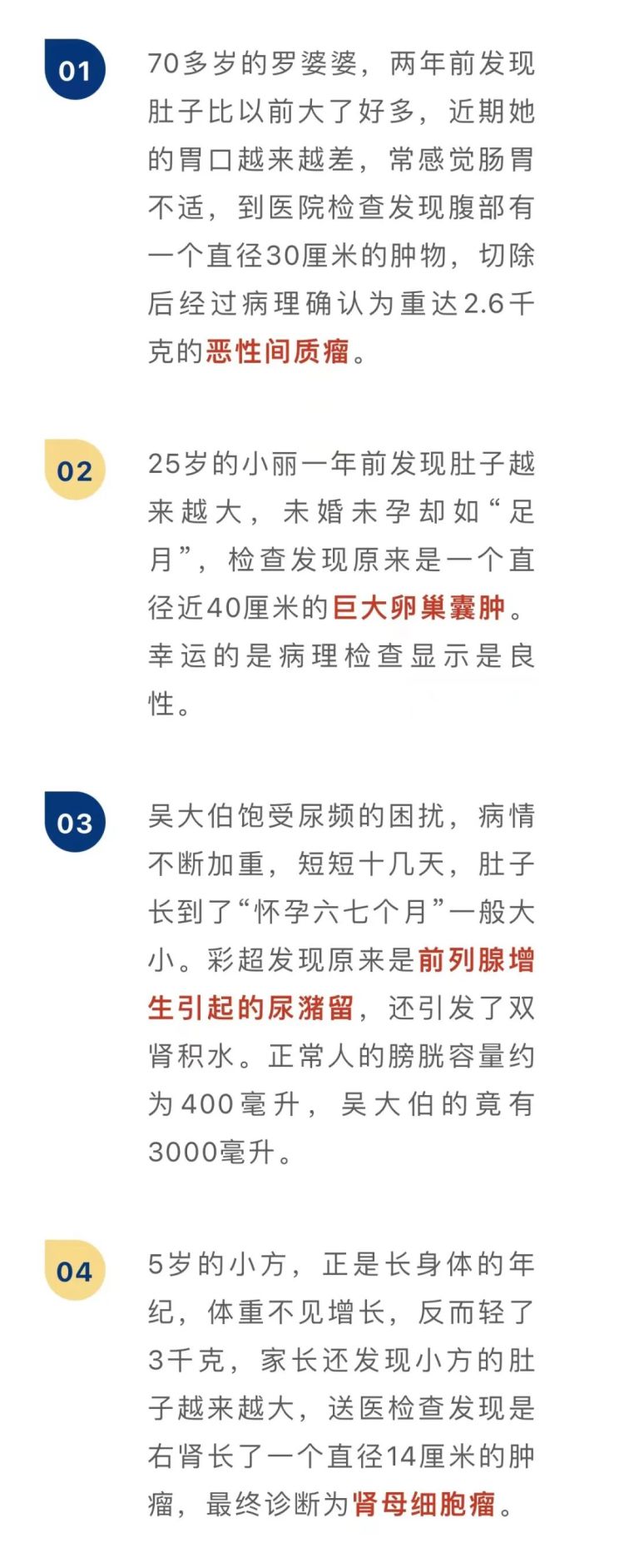这些年来,误把生病当成发福的案例真不少,不限男女、不限年龄,而且肚里“怀”的东西五花八门,比如: