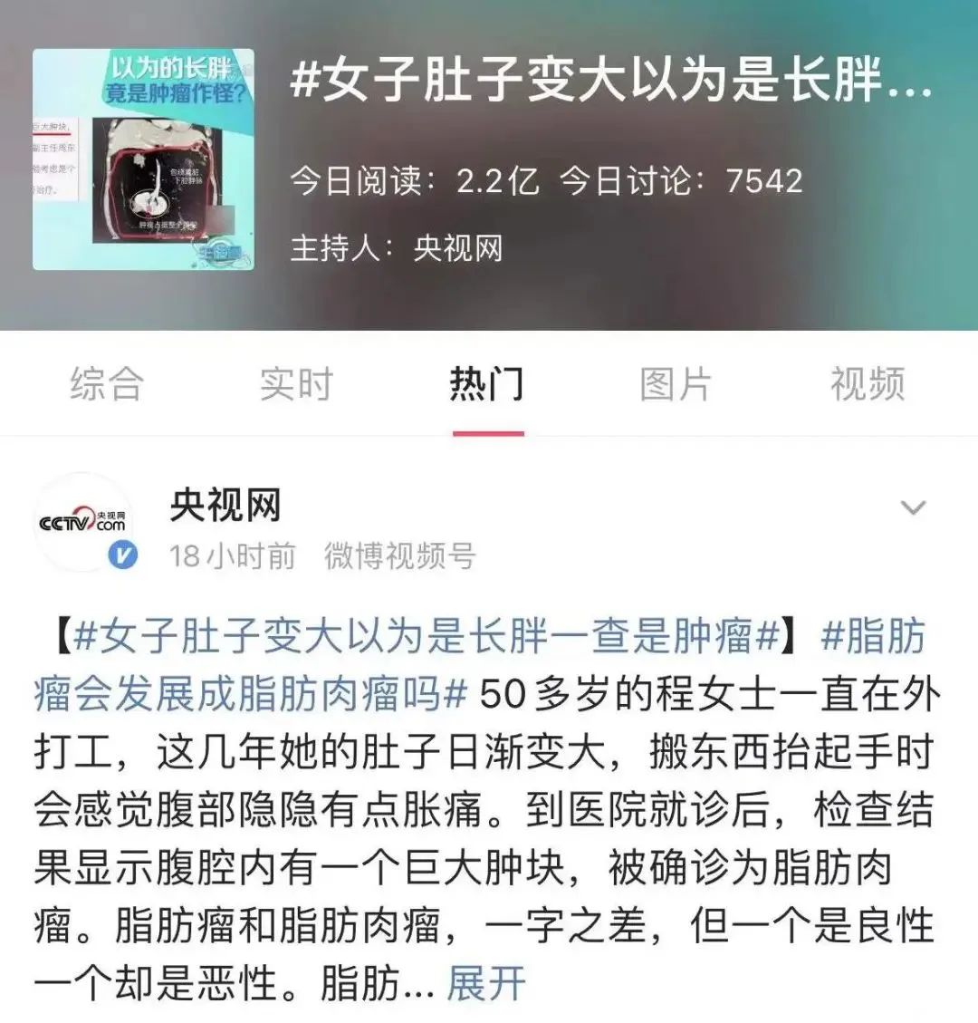 而且,程女士长的脂肪肉瘤 ,是一种源于肌纤维及深部组织的恶性肿瘤,摸上去变硬,边界不清,可能扩散到其他区域,如果不加以治疗可危及生命。