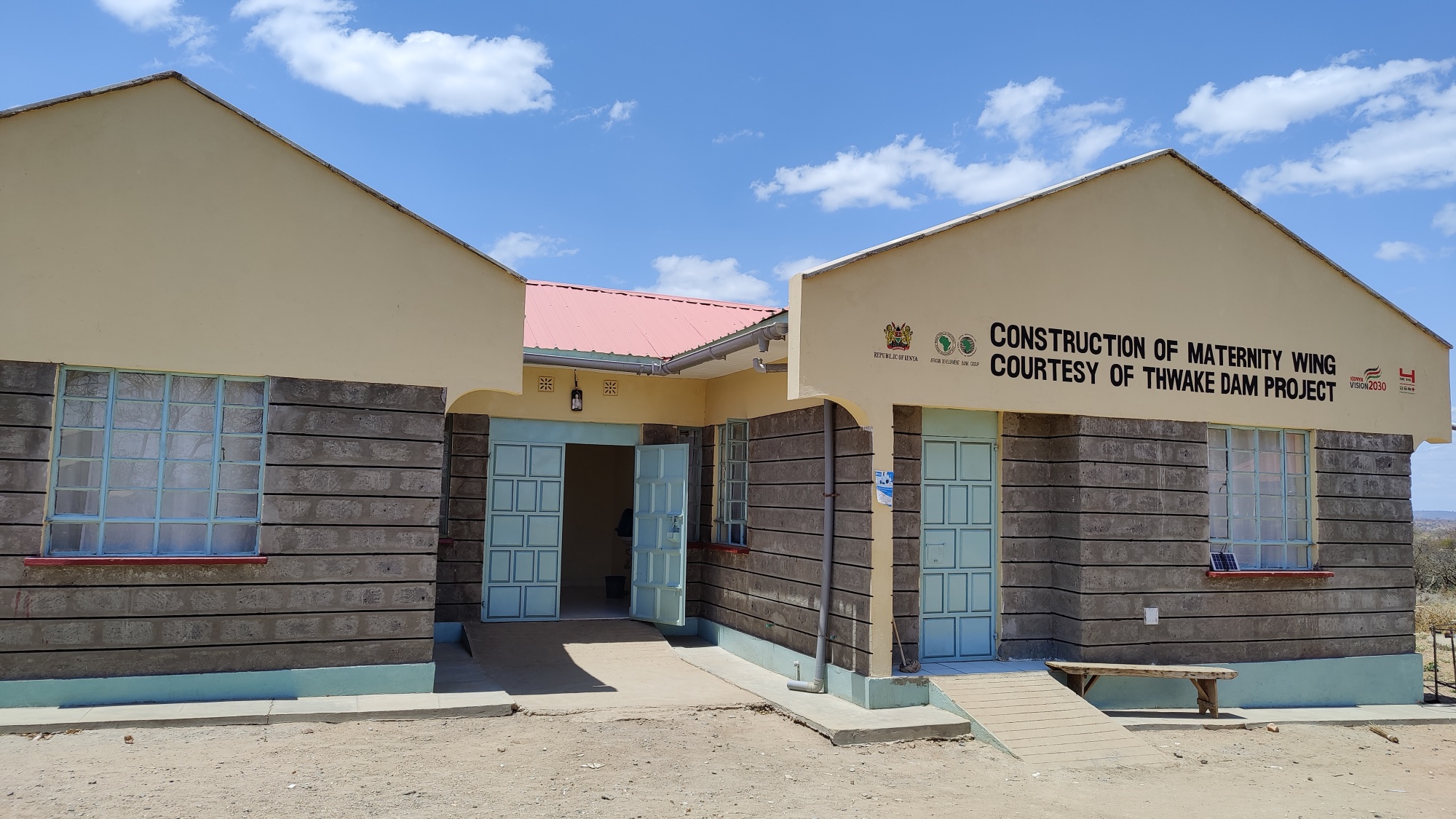 卡图伦比医疗中心位于肯尼亚马奎埃尼郡,为周边十几个村镇提供医疗服务。走进医疗中心,由肯尼亚斯瓦克大坝项目出资建设的妇产楼建筑分外醒目,鹅黄色的房檐搭配天蓝色的门窗,显得温馨又充满活力。