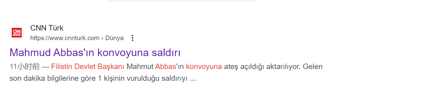 据塔斯社7日援引美国有线电视新闻网土耳其语频道的消息报道,阿巴斯的车队遭到袭击,他的一名安保人员在袭击中死亡。不过,报道未明确说明此次袭击的具体地点。“今日俄罗斯”(RT)7日援引土耳其《新黎明报》的消息报道称,阿巴斯的一名安保人员在袭击中被枪杀。