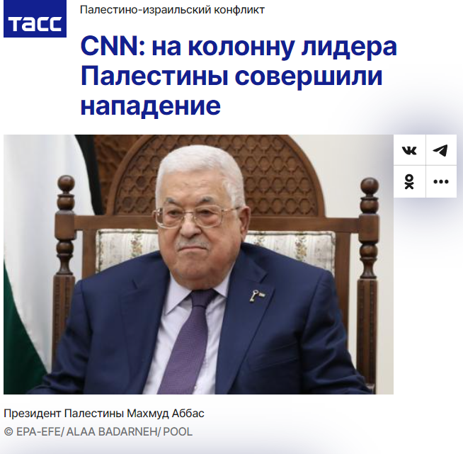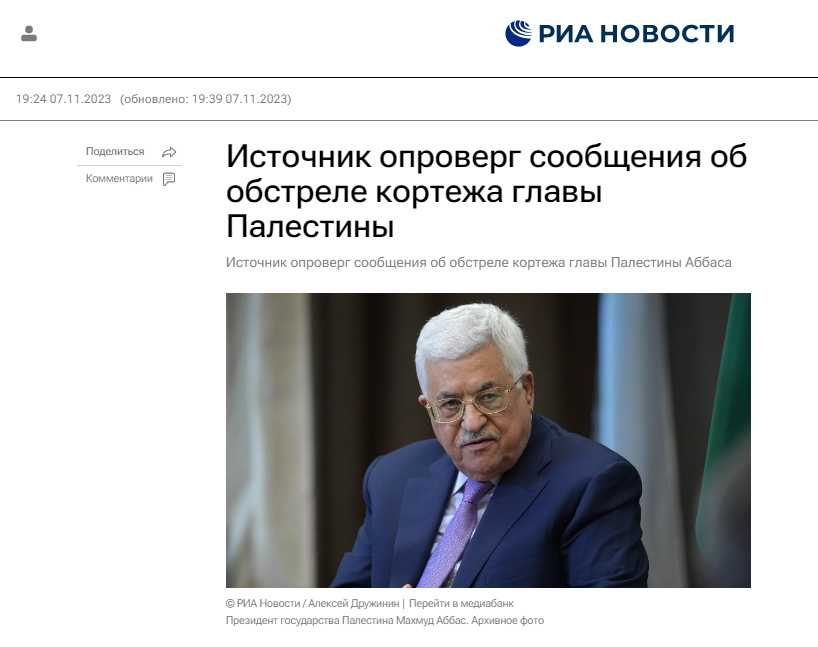 报道称,该消息人士告诉俄新社,“阿巴斯的车队没有遭枪击”。报道还称,该消息人士补充说,“阿巴斯的身体健康,他正在位于拉姆安拉的办公室工作”。