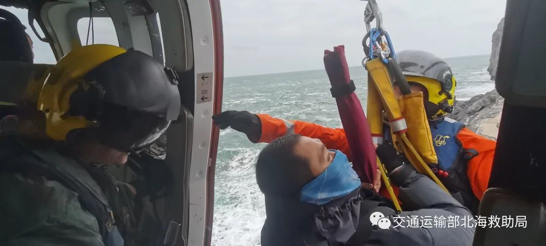 此次救助,现场风大浪急,环境复杂,乱流明显,影响直升机稳定悬停,尤其是救助直升机靠近悬崖实施营救时,飞行员操作救助直升机悬停于悬崖附近,吊运过程中旋翼边缘距离悬崖不足5米,异常惊险。礁石上湿滑、崎岖不平,受悬翼下洗气流影响,救生员在任务过程中艰难地保持身体稳定。最终机组人员高效协同、精心配合,圆满完成救助任务。