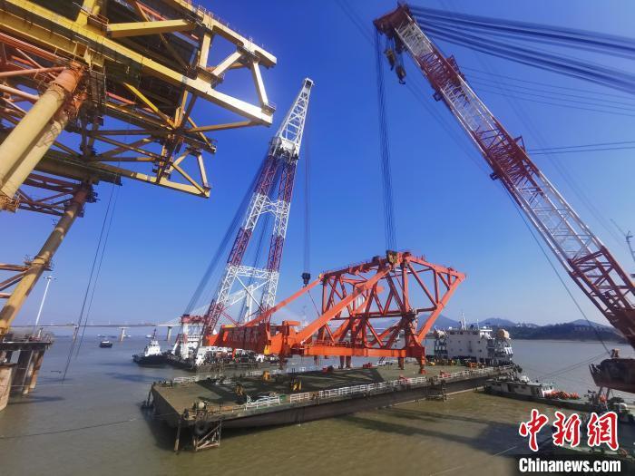 架梁吊机正在进行吊装工作。完颜亮 摄