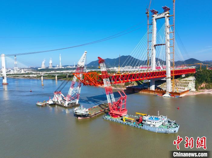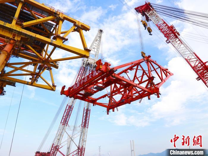 中新网合肥11月8日电(刘鸿鹤 张宇 完颜亮)11月8日,由安徽省铜陵市交投集团投资建设、中铁大桥院设计、中铁大桥局承建的G3铜陵长江公铁大桥架梁吊机顺利从南岸整体转场到北岸,标志着国内首次架梁吊机整体转场取得成功,大桥关键线路施工取得重大进展。