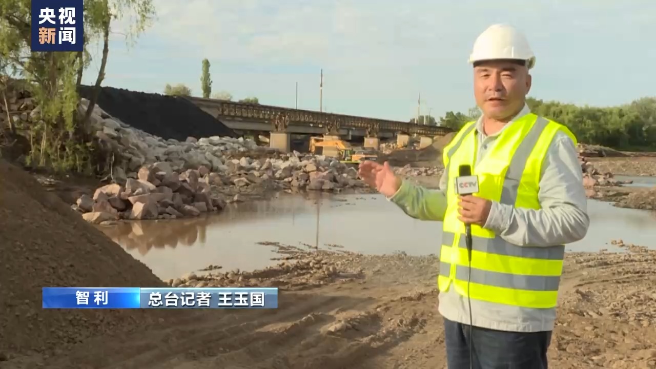 总台记者 王玉国:里尔盖河上的这座大桥位于圣地亚哥以南240公里。在今年的6月24日,一场巨大的洪水冲毁了铁路桥两侧的路基,现在四个多月过去了,现场仍在施工抢修当中。