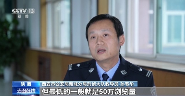 西安市公安局新城分局网安大队的大队长 石磊:这个(视频)流量会升的很快,基本上一晚上就可以升到100万,甚至升到300万的流量,按正常的一个流量传播速度的话,是达不到这么快的。