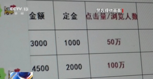 西安市公安局新城分局刑侦大队教导员 孙韦华:他是这么承诺的,就是它一般分到5到6个挡位,每个公司不一样,但最低的一般就是50万浏览量,收费在2500到3000,然后就是100万、300万、600万的浏览量,最高是1000万,1000万浏览量一般就是支付费用19800。