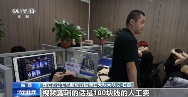 西安市公安局新城分局网安大队的大队长 石磊:我们当时核算了一下费用,他们的成本费,就是光收刷流量这个环节的话,只用支付30块钱。 视频剪辑的话是100块钱的人工费加上一些文案策划,可能就是50块钱,成本价的话180块钱,可以完成整套服务,它却收取了19800。