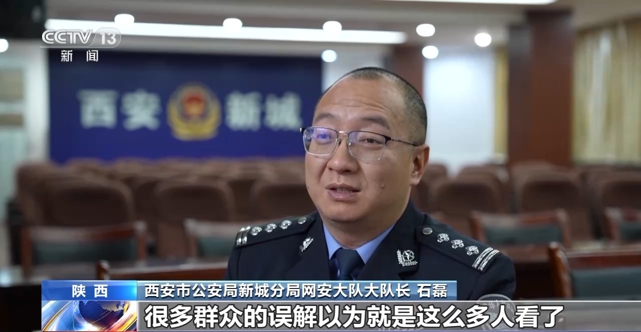 西安市公安局新城分局网安大队的大队长 石磊 :视频没有人看,属于虚假的,流量上去,很多群众的误解以为就是这么多人看了,其实不是的,这些都是机器刷出来的。