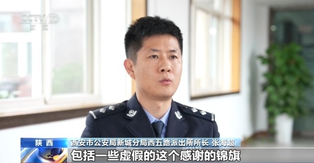 西安市公安局新城分局西五路派出所的刑侦所长 张海超:制作了一些虚假的牌匾,包括一些虚假的这个感谢的锦旗、感谢信,这些都是他们为了给这个网络上引流的过程中,骗取这个受害人的信任,做的一些虚假的东西。