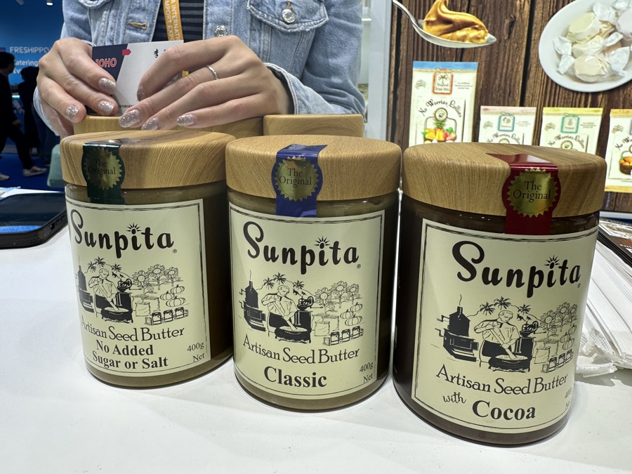 他们带来的王牌产品,是一款手工种子黄油。它的独特之处在于,以葵花籽和南瓜子为原料,低脂肪,特别适合花生过敏人士食用。“在中国,这样的产品很稀奇,这几天很多人过来试吃、咨询合作。”记者刚到展台时,代理商Fiona正和两名观展商聊得火热。