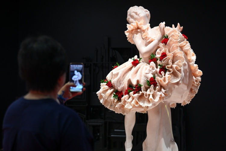 此次杰夫·昆斯的大型雕塑作品由首次参展进博会的佩斯画廊带来,该画廊将这件作品从纽约运到上海,就是希望通过进博会的舞台,让艺术家的作品被更多的人看到。野兽派代表人物马蒂斯作于1919年的《撑绿伞女子像》,绿色雨伞和女子的灰色衣裙、紫色长袜形成鲜明对比,拙朴的笔触却难掩地中海的温暖与浪漫;甚至还有难得一见的越南艺术家作品——黎谱的《白色瓷瓶里的红花》,成为佳士得此次参展作品的主推作品。