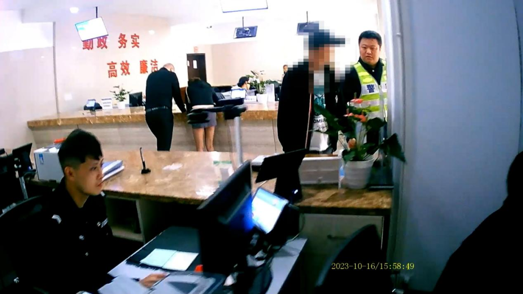 此时,户籍室大门敞开着,如果青年男子察觉异样并逃跑,不仅打草惊蛇还有可能造成其他严重后果。为了稳住对方,周林假装操作一番后称,系统出现了问题暂时无法办理,让男子等一等,同时窗口户籍民警方露借口叫维修人员前往办公室,将情况汇报给当日值班副所长王睿。