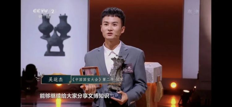 丰富的访古经历让吴运杰的历史知识日益累积。2022年,在总台第二季《中国国宝大会》中,他在12轮文博知识竞答中过关斩将,最终夺得冠军。