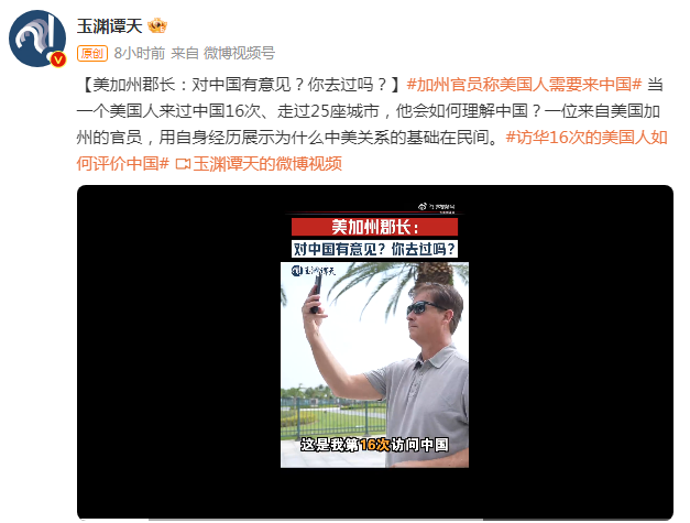 当一个美国人来过中国16次、走过25座城市,他会如何理解中国?一位来自美国加州的官员,用自身经历展示为什么中美关系的基础在民间。