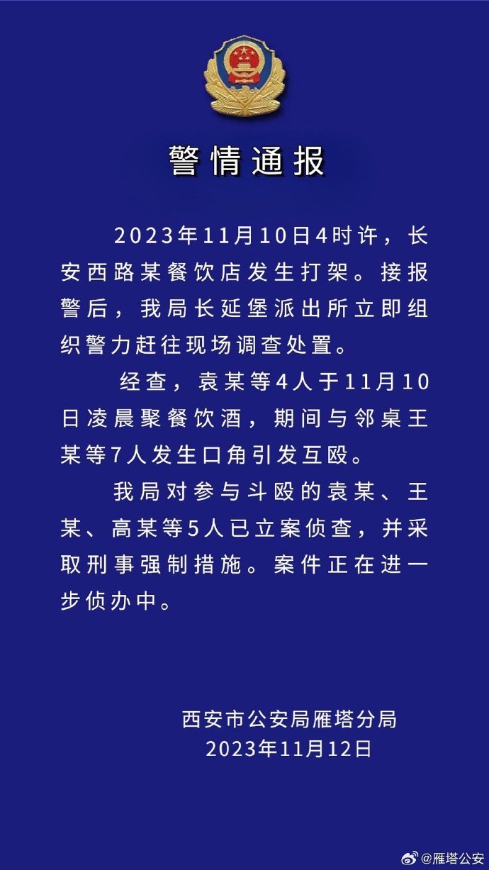 2023年11月10日4时许,长安西路某餐饮店发生打架。接报警后,我局长延堡派出所立即组织警力赶往现场调查处置。