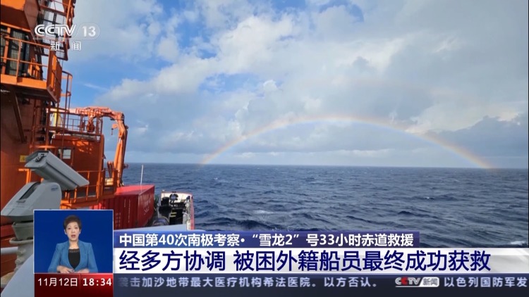 总台央视记者 李宁 :现在是当地时间的11日晚上11时,考察队员已经将求救船只和人员运抵巴布亚新几内亚卡维恩附近海域,移交给当地相关组织。在这场长达33个小时的救援中,考察队员展现了专业的能力,更重要的是体现了以人为本的国际人道主义精神。稍后“雪龙2”号重新起航,前往它最终的目的地——南极。