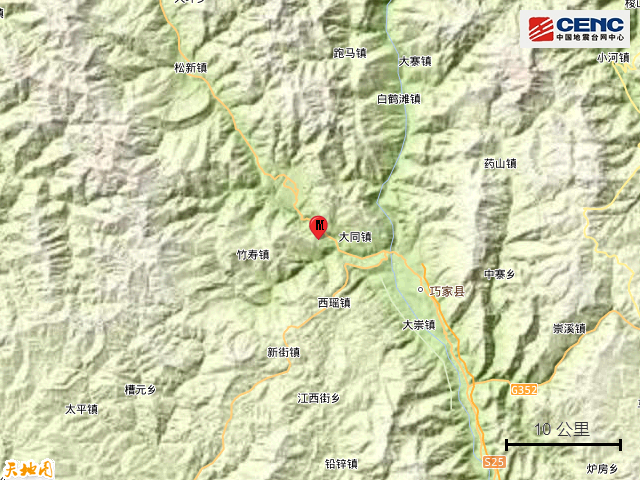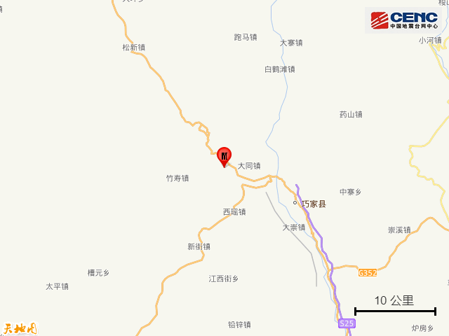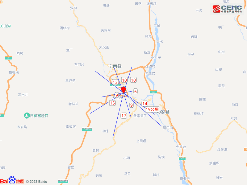 附近村镇: 本次地震周边5公里内的村庄有新店子、曾家弯子、中村子、花山村、新街村、二台坡、板依村、高家弯子、牟家坪子、上花山,20公里内的乡镇有大同镇、竹寿镇、西瑶镇、石梨镇、宁远镇、骑骡沟镇、俱乐镇、华弹镇、新街镇、大崇镇。