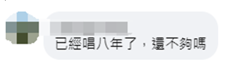 这一说法,引起一些岛内网民酸讽,在脸书留言表示,“已经唱8年了,还不够吗?”↓