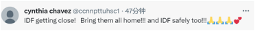 “以色列国防军更接近了!把他们都带回家!!!以色列国防军也要安全(回来)!!!”