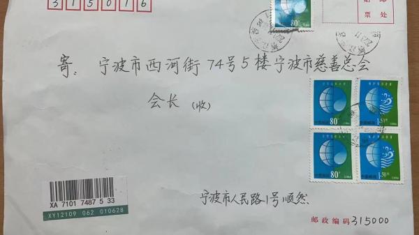 11月15日,宁波市慈善总会收到署名为“顺然”的挂号信,内含110张汇款收据,累计108万元。