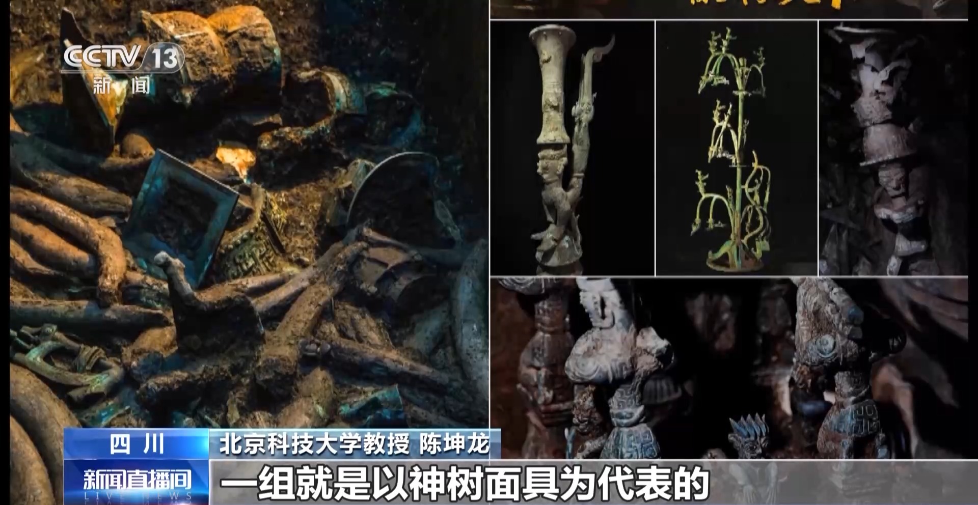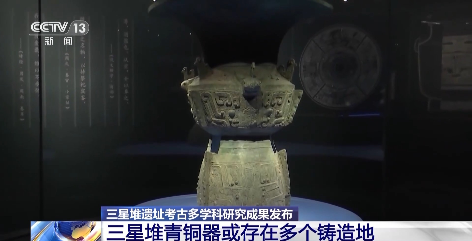 北京科技大学教授 陈坤龙:三星堆出土的青铜器可以非常明确地分成两组,一组就是以神树面具为代表的这种本地风格的铜器,另外一组是以大口尊、罍为代表的这样一些容器类的器物。从我们最近的基于泥芯的铸造地研究的结果来看,两种器物非常有可能是在不同的地区铸造而成的,但是目前的研究并没有显示这两处具体的铸造地在哪里,这也是我们下一步工作的主要的内容。