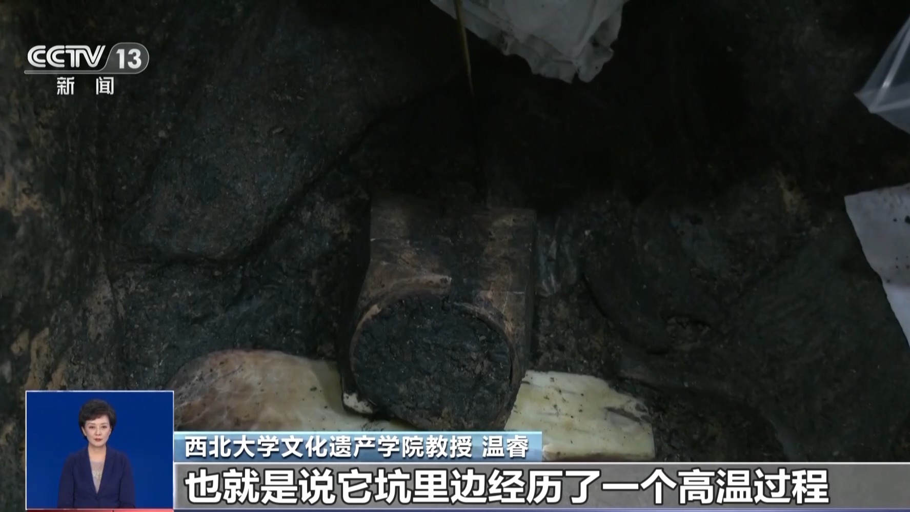 西北大学文化遗产学院教授 温睿:动物的骨渣主要是在一号坑,但是其他的几个坑里的器物和土壤的残留,能够看到猪和牛的脂肪酸和蛋白质,也就是说是一个完整的祭祀活动。祭祀活动之后,他把祭祀活动的器物做了集中埋葬,对动物的骨骸其实也做了相对集中埋葬,另外一个角度说明这8个坑基本上是同时或者在非常短的时间里面形成的。