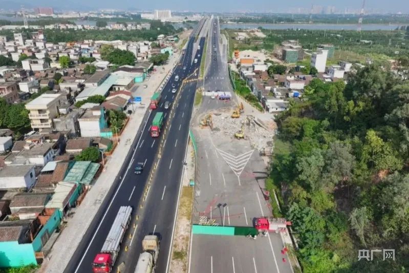 由于该民房位于小冈大桥桥脚,严重影响项目建设进度,并带来诸多的安全隐患。为保障人民群众出行安全通畅,项目建设方启动改道方案,全力追赶工期,于2022年年初完成改道并临时通车,确保该路段具备临时通车条件。