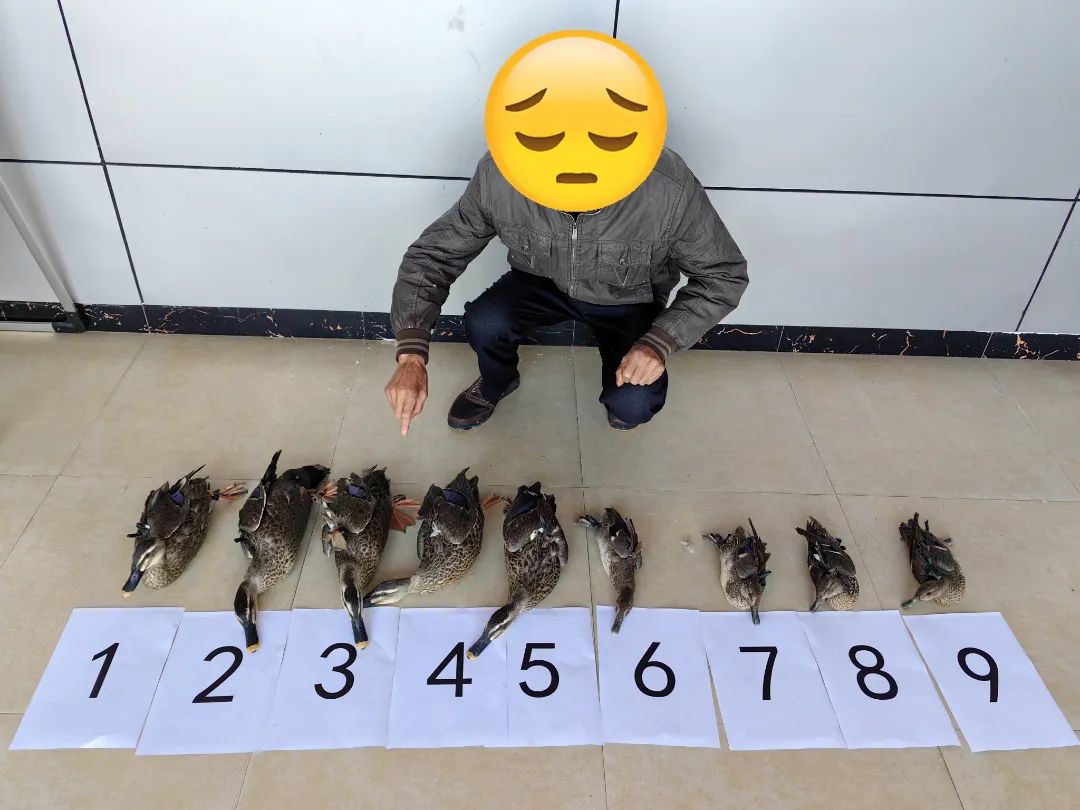 2023年11月16日早上,民警在检查中发现一男子随身携带的编织袋中有数只飞禽,遂将该名男子依法带回接受调查。