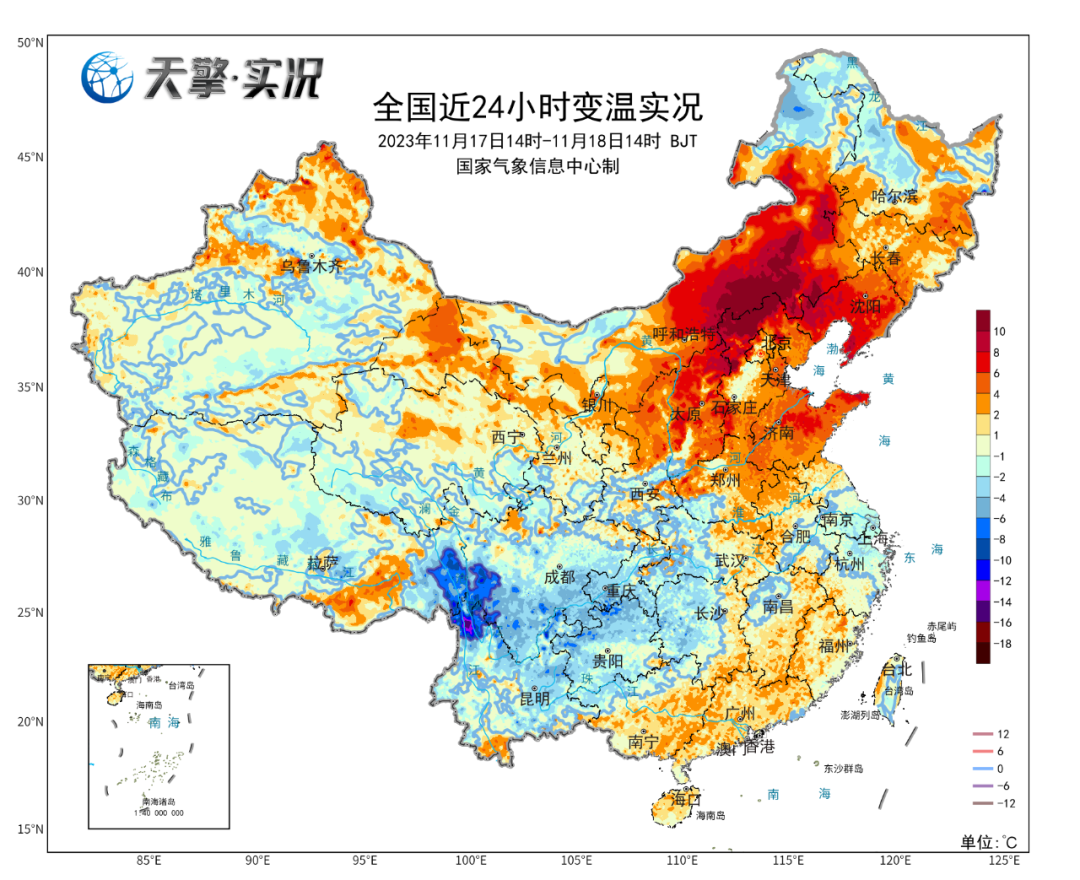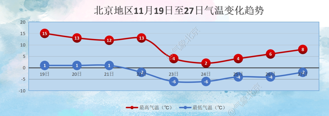 由于前期升温明显,这次降温的空间很大,最高气温跌幅将比“腰斩”还猛。比如北京,预计11月22日最高气温可达13℃,23日就只有4℃,最低气温更是只有-6℃。