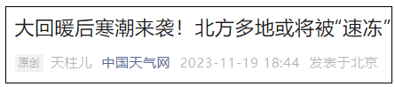 下周寒潮将影响我国
