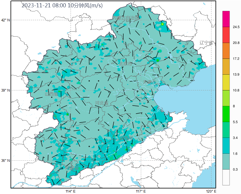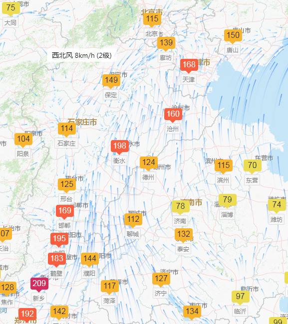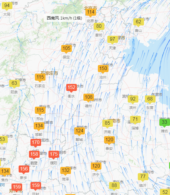 21日早间,区域北部地区转为弱北风,与偏南风在天津-沧州-衡水一线形成区域辐合带,我市空气质量持续维持在中度污染水平。