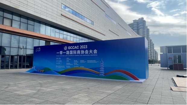 2023“一带一路国际商协会大会”即将在福州市数字中国会展中心拉开帷幕。图为2023“一带一路国际商协会大会”现场 环球网记者 王妍 摄