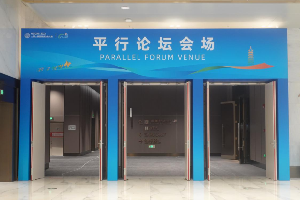 2023“一带一路国际商协会大会”围绕经贸合作、文化创意、品牌出海等议题设置了系列论坛。图为平行分论坛入口 环球网记者 陈全 摄