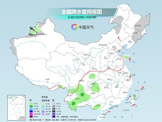 明天,内蒙古东北部、东北地区东部、新疆西北部等地部分地区有小到中雪或雨夹雪。四川南部、云南东部和南部、贵州西部等地部分地区有小雨,局地中雨。