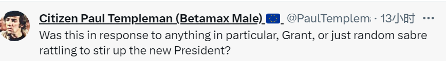 “这是对什么特别的事情做出的回应吗,格兰特,还是只是为了激怒新总统随意炫耀武力?”