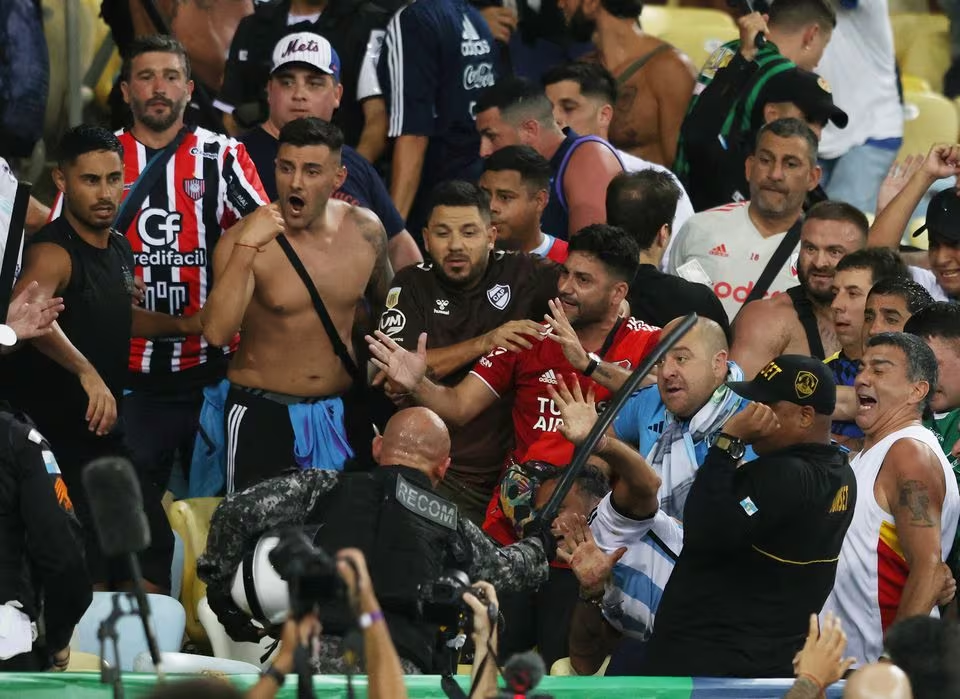 报道称,冲突发生在比赛开始前奏国歌阶段,里约热内卢马拉卡纳体育场看台上的巴西球迷与阿根廷球迷发生冲突,随后有巴西警察用警棍驱赶客队球迷,后者则朝警察丢椅子。同时,也有球迷惊慌失措,从看台跑到球场上躲避冲突,至少有一名受伤球迷被担架抬出球场。