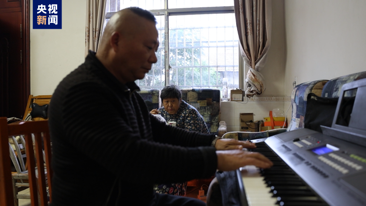 在偷偷练习一段时间后,王永久小心翼翼将妻子搀坐在电子琴前,弹了一首曲子给她听。弹奏间,妻子的脸上浮现了久违的笑容,跟着音乐轻轻哼唱,沉醉不已。