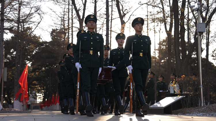 2023年11月18日下午,雪后的沈阳抗美援朝烈士陵园里,松柏愈显苍翠。陵园北侧的下沉式烈士纪念广场上,解放军仪仗司礼大队的礼兵刚到沈阳便投入到训练中。今年的安葬仪式礼兵任务,将首次由他们承担。