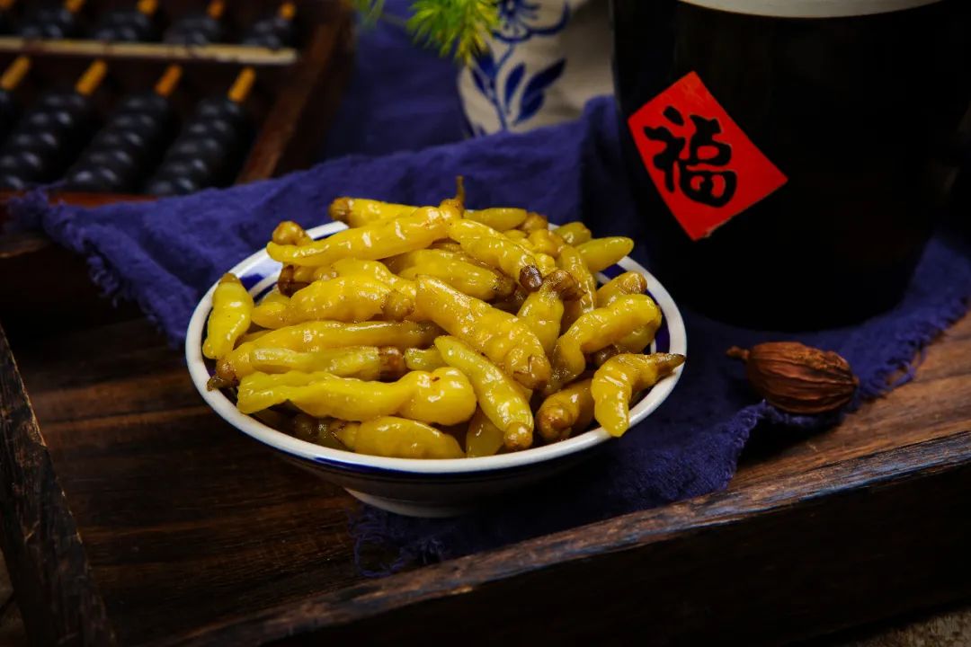 贵州遵义茅台镇的仡佬族人把糯米粉与茅台酒搅拌,填入去籽辣椒,入坛发酵月余,取出食用时便是辣香酸香酒香的“莽尖儿”,比近期大热的酱香拿铁,足足早了近400年。