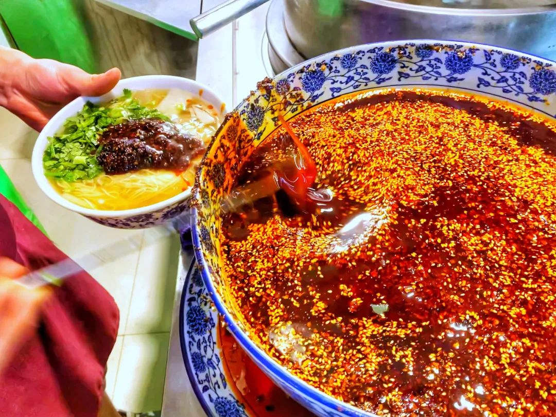 西北人嗜好油泼辣子,陕西“八大怪”中“油泼辣子一道菜”,关中民谣唱“吃一碗羊肉泡喜气洋洋,没油泼辣子嘟嘟囔囔”。陕西人至爱秦椒,青海人钟情循化椒,新疆人独尊安集海辣皮子,滚油一汆,现泼现吃,香气十足。山西喜酸食辣,刀削面饸烙面桌上一摆,几勺辣子调陈醋,寡淡生活瞬间活色生香。甘肃炕辣子、宝鸡辣子火锅、回族麻辣羊蹄、藏族香辣牦牛肉,茶卡盐加辣椒籽小火炒熟,又是一道菜。