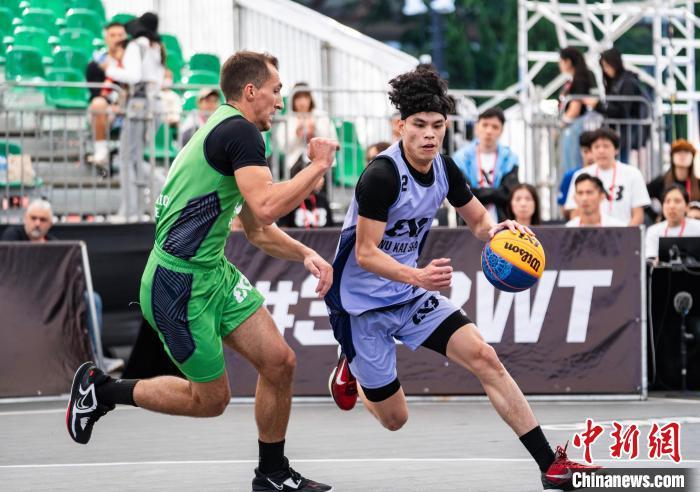 图为中国香港乌溪沙队(紫)选手杨瑞鸿在比赛中突破黑山波多里察队选手的防守。 中新网记者 侯宇 摄