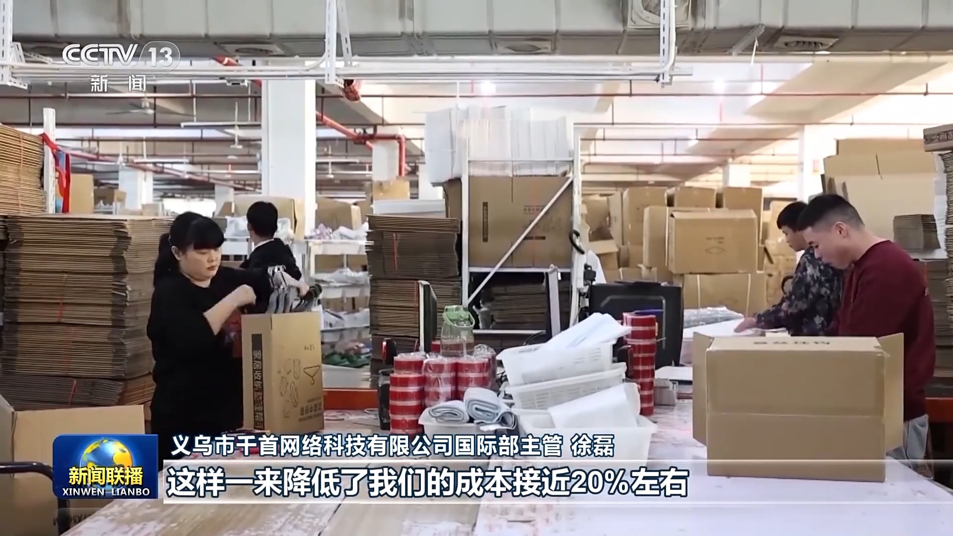 义乌市千首网络科技有限公司国际部主管 徐磊:现在我们做起了甩手掌柜,简化了我们的经营链路;这样一来降低了我们的成本接近20%左右,也降低了我们进入跨境领域的门槛;最近一年我们公司跨境销售额每月都有10%左右的提升。